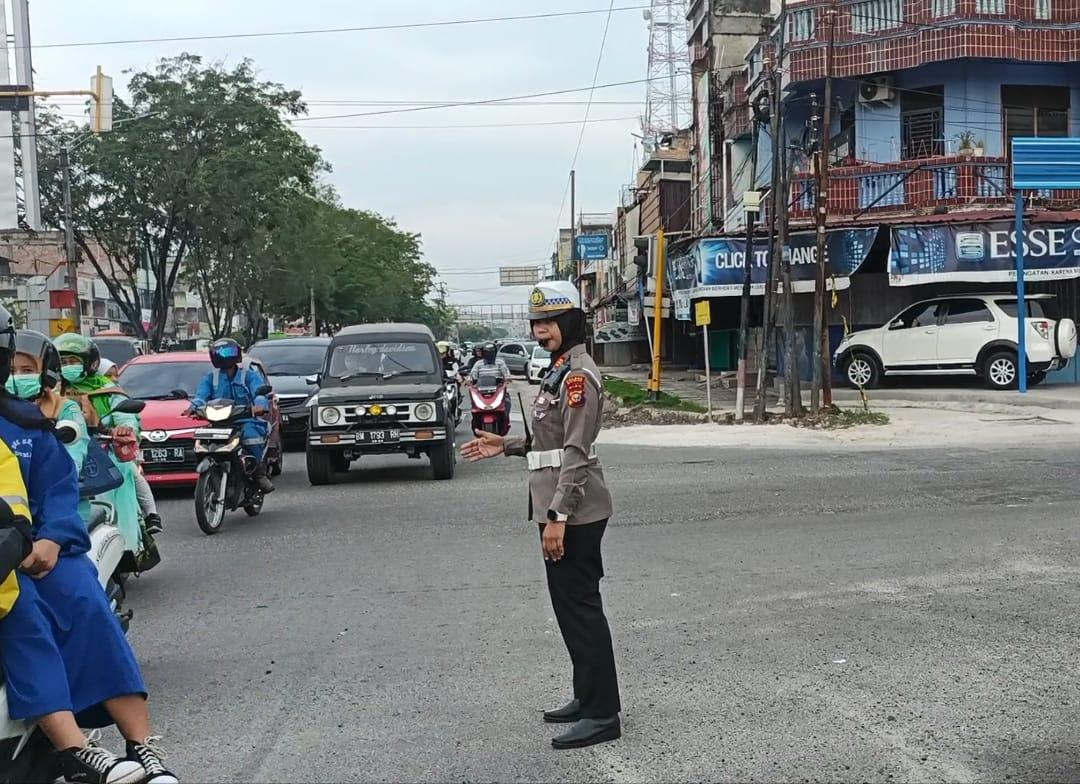Kegiatan pengaturan arus lalu lintas dan patroli tersebut tampak dimulai sejak pukul 06.00 WIB di beberapa titik lokasi yang kerap mengalami kemacetan.
