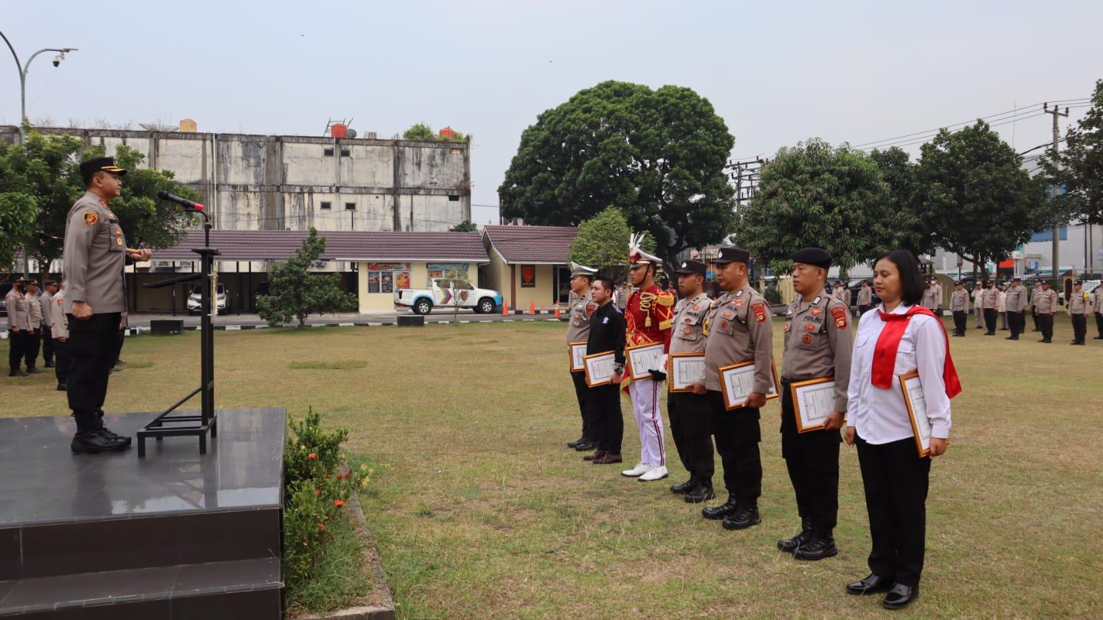 Mataelangindonesia.com – Lubuk Linggau Sumsel, Kapolres Lubuklinggau, AKBP Indra Arya Yudha, menggelar apel pemberian penghargaan sebagai bentuk apresiasi kepada personel Polres Lubuklinggau yang telah memberikan kontribusi positif bagi Polri, khususnya Polres Lubuklinggau, serta kepada masyarakat yang telah membantu tugas Kepolisian. Acara penghargaan ini berlangsung pada Kamis, 5 Oktober 2023.