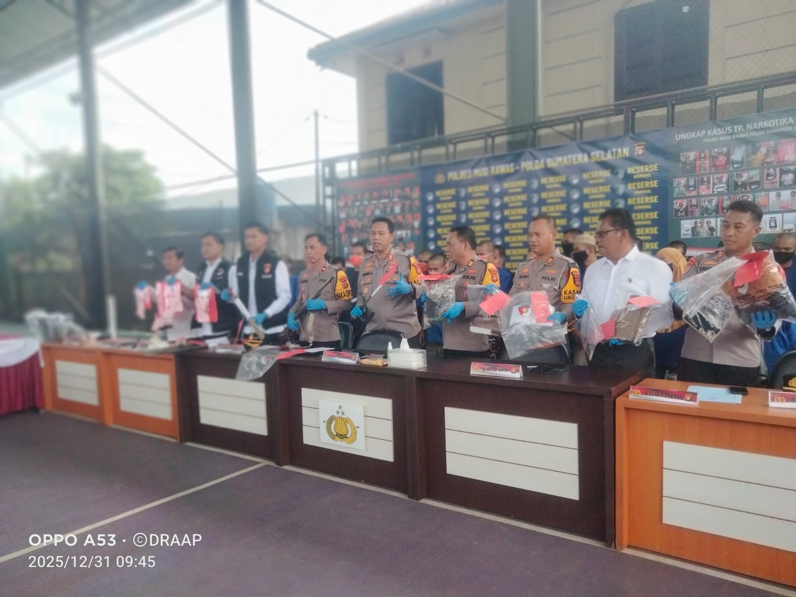 MUSI RAWAS ( mediamataelangindonesia.com ), Menutup akhir tahun 2025, Polres Musi Rawas menggelar Press Release Akhir Tahun di lapangan Tenes Mapolres Mura, Rabu (31/12/2025). Kegiatan ini dipimpin Kapolres Musi Rawas AKBP Agung Adhitya Prananta, didampingi Wakapolres Kompol Hendri dan pejabat utama Polres Mura.
