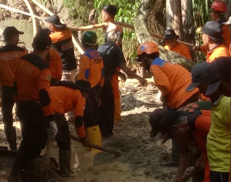 Baru sempat di lakukan pembersihan material longsoran dan dibersihkan bersama oleh warga pada hari ini Selasa (9/1/2024). mundurnya kerja bakti karena pada hari Minggu karena ada hajatan di lokasi tersebut.