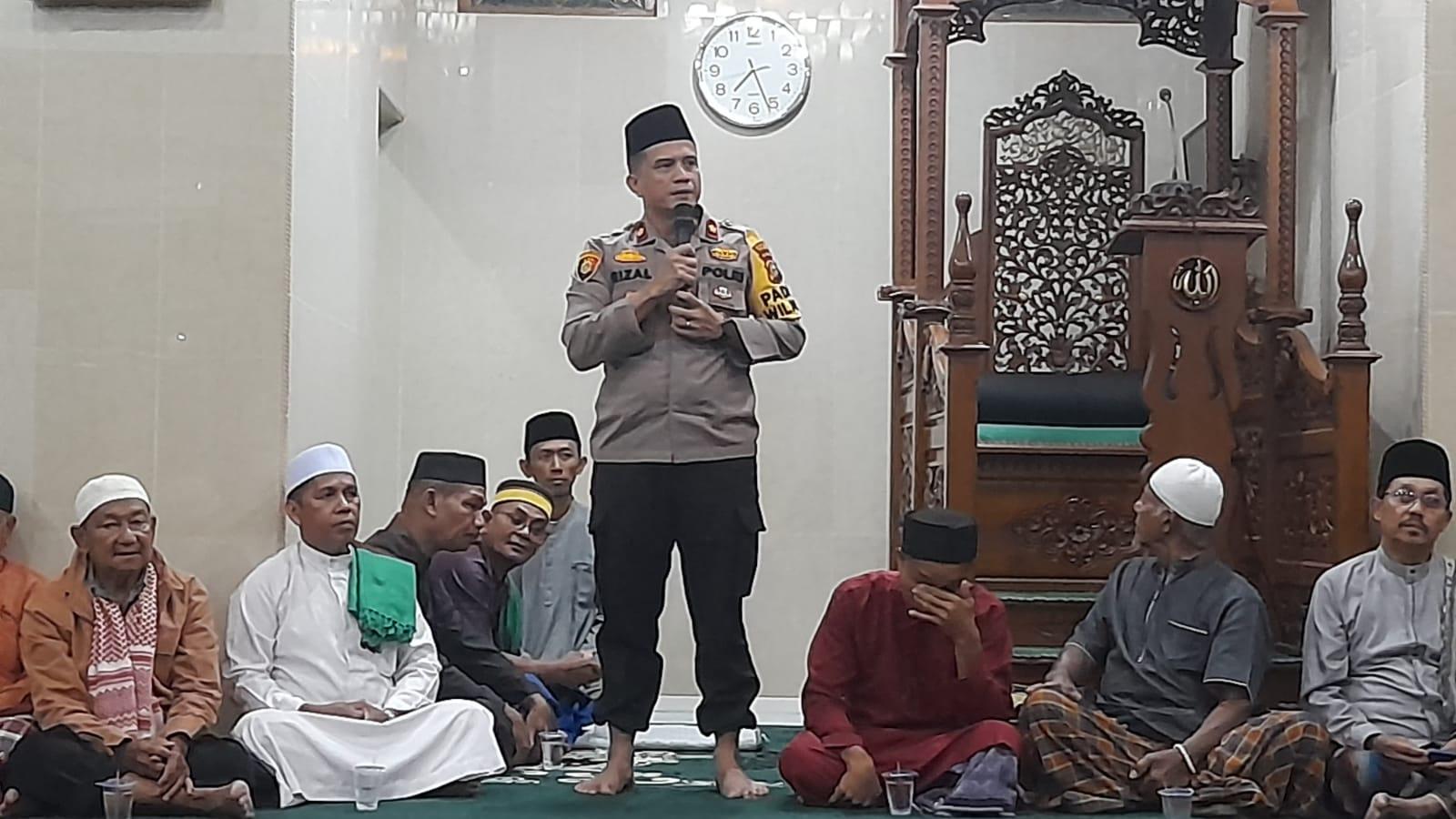 Mataelangindonesia.com – Dumai, Personel Polsek Dumai Barat Jajaran Polres Dumai melaksanakan kegiatan cooling system dengan hadir bersama masyarakat menunaikan ibadah Salat Magrib dan Isya Berjemaah di Masjid Al-Hijriah Jalan Gunung Merapi Kelurahan Bumi Ayu Kecamatan Dumai Selatan, Minggu (14/1/2024).
