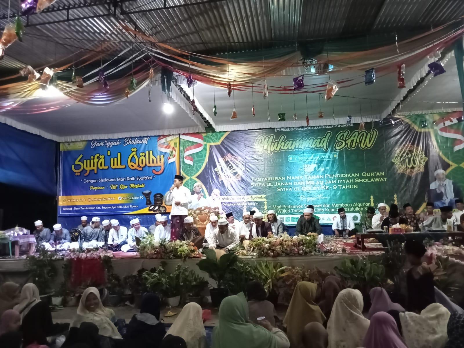 Mataelangindonesia.com – Mura Sumsel, Waketum KADIN (Kamar Dagang Dagang Dan Industri) RI sekaligus Dewan Pakar HPN (Himpunan Pengusaha Nahdliyin) Sumatera Selatan Dian Prasetio hadiri acara peringatan Maulid Nabi SAW sekaligus Milad (Ulang Tahun ) Jamaah Sholawat Syifa’ul Qolby ke -9 Tahun Pimpinan Ustad.Riya Mashabi binaan KH.Imam Asfali Pimpinan Ponpes Syifaul Janan Air Satan Muara Beliti di desa Tambah Asri Kecamatan Tugumulyo (21/10)