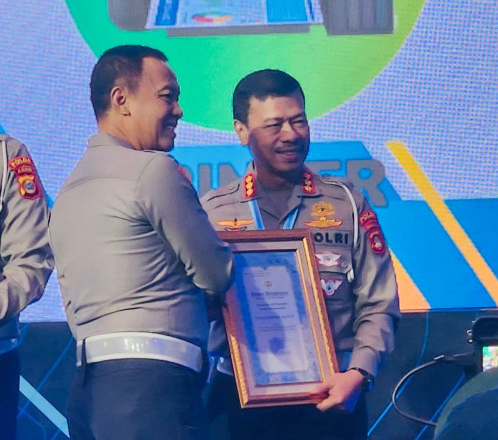 Penghargaan diraih atas pencapaian pelaporan penggunaan aplikasi Data Laka Lantas Online IRSMS kategori Polda Tipe A setelah Polda Jawa Timur dan Polda Aceh.