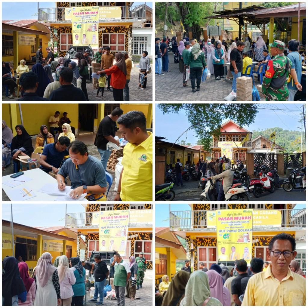 Pasar Murah Di Adakan Oleh DPD II Golkar kota Sabang Di Halaman Kantor Golkar Sabang Dengan Jumlah Paket Yang Di Sediakan 150 Paket Untuk Masyarakat Sabang Yang Ingin Membelinya.