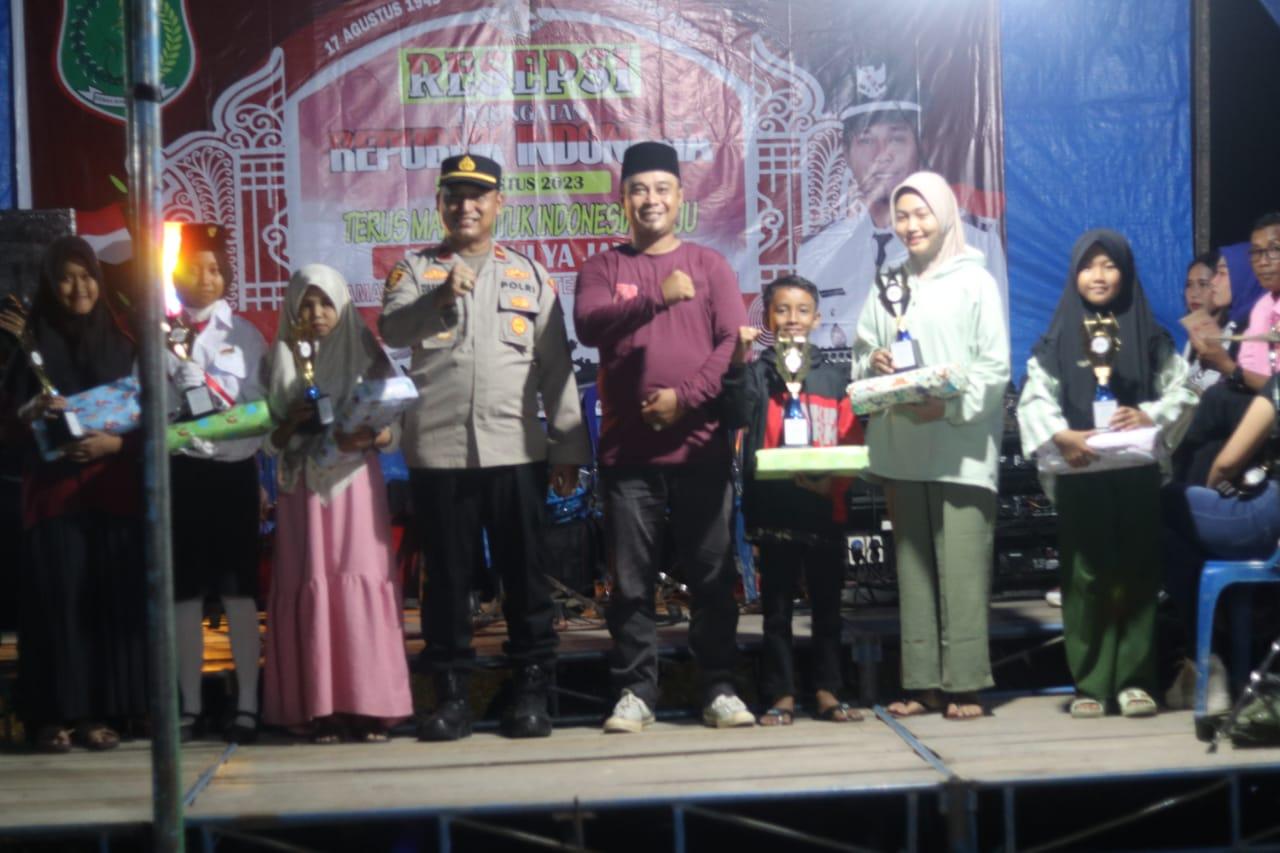 Mataelangindonesia.com – Muba Sumsel, Kapolsek Lalan Ipda Zulkarnain Afianata, S.T., M.Si., M.H beserta anggota menghadiri giat pembagian hadiah perlombaan dalam rangka HUT RI ke-78 di halaman kantor Kades Desa Mulya Jaya Kecamatan Lalan Kabupaten Muba, Kamis (24/08/2023) sekira pukul 19.30 Wib s/d selesai.