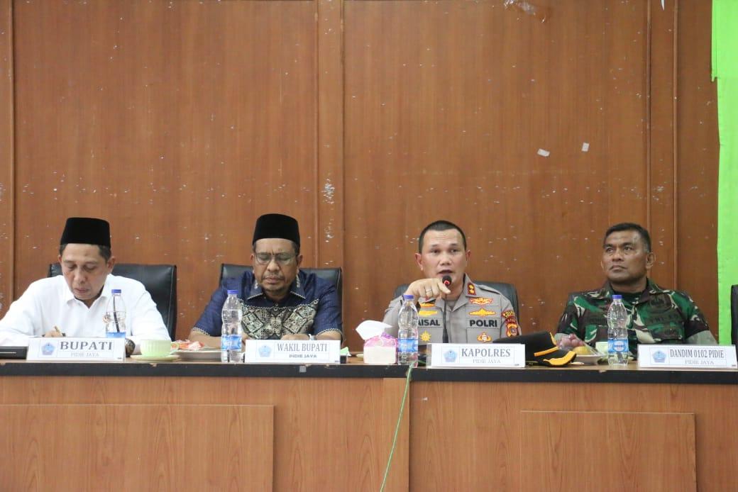 Komitmen tersebut ditegaskan dalam rapat koordinasi (rakor) yang digelar di Aula Cot Trieng, Kantor Bupati Pidie Jaya, Jumat (16/5/2025). Rakor dipimpin langsung oleh Bupati H. Sibral Malasyi. MA, S.Sos., M.E., dan dihadiri oleh seluruh jajaran Forkopimda, Ketua DPRK, Kapolres, Dandim 0102, Sekda, serta tokoh kunci seperti Ketua Pengadilan Negeri, Ketua MPU, Ketua Mahkamah Syariah Meureudu, dan Kakan Kemenag.