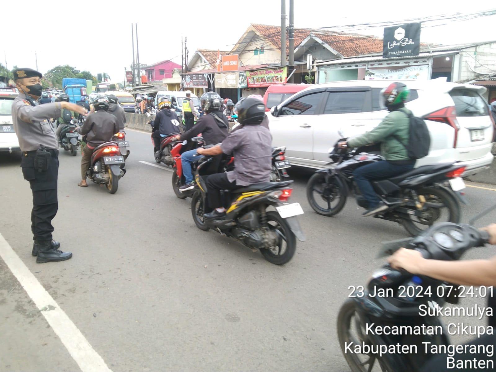 Mataelangindonesia.com – Tangerang, Polsek Cikupa dengan kekuatan personel terdiri dari Iptu Purwantoro, Ipda Udi Muhdi, dan Bripka Reza Fajar A, melaksanakan kegiatan pengaturan lalu lintas di Jalan Raya Serang depan PT.Cingluh Selasa ( 23 / 01 / 2024 )