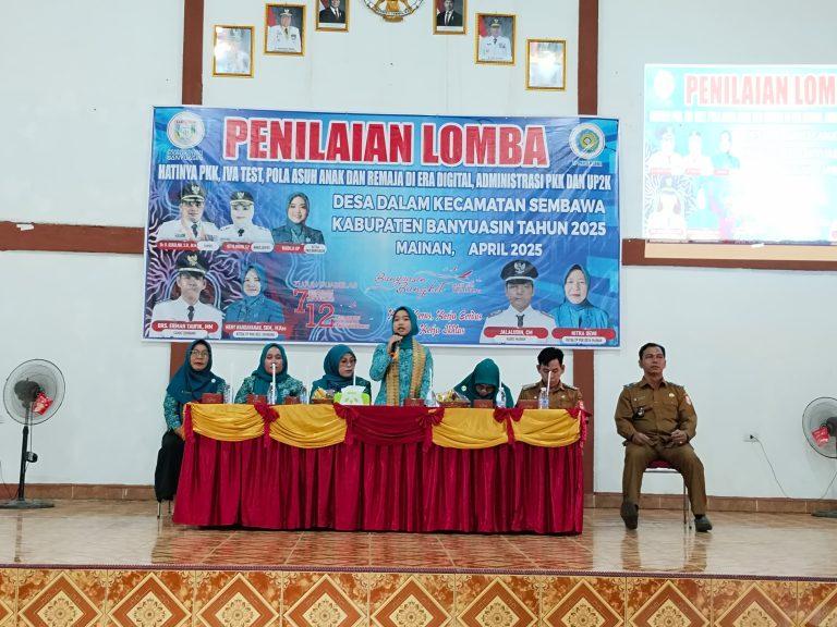 Kecamatan Sembawa — Ketua TP PKK Banyuasin, Nabila Askolani Putri bersama Pengurus TP PKK Kabupaten mengadakan Penilaian Lomba HATINYA PKK, IVA Test, Pola Asuh Anak dan Remaja di Era Digital, Admintrasi PKK dan UP2K Desa dalam Kecamatan Sembawa, Desa Mainan, Selasa (22/04/2025).