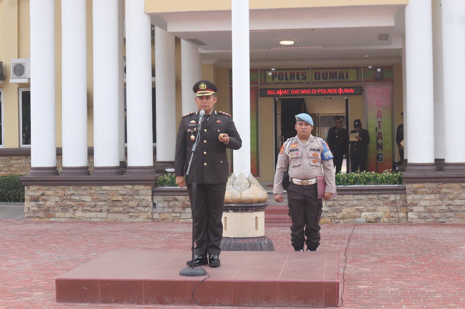 Upacara dipimpin oleh Kapolres Dumai AKBP Dhovan Oktavianton, S.H, S.I.K, M.Si yang bertindak sebagai Inspektur Upacara. Sementara bertindak sebagai Perwira Upacara yakni Kasat Samapta Polres Dumai AKP M. SAHUDI, S.H dan bertindak sebagai Komandan Upacara yakni Kanit Pam Obvit Sat Samapta Polres Dhmaj Ipda Samuel Eri Santoso.