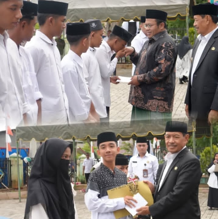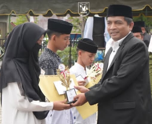 Suasana haru mewarnai prosesi penyerahan hadiah ketika para santri menyalami dan mencium tangan para pimpinan daerah sebagai bentuk penghormatan dan doa keberkahan.