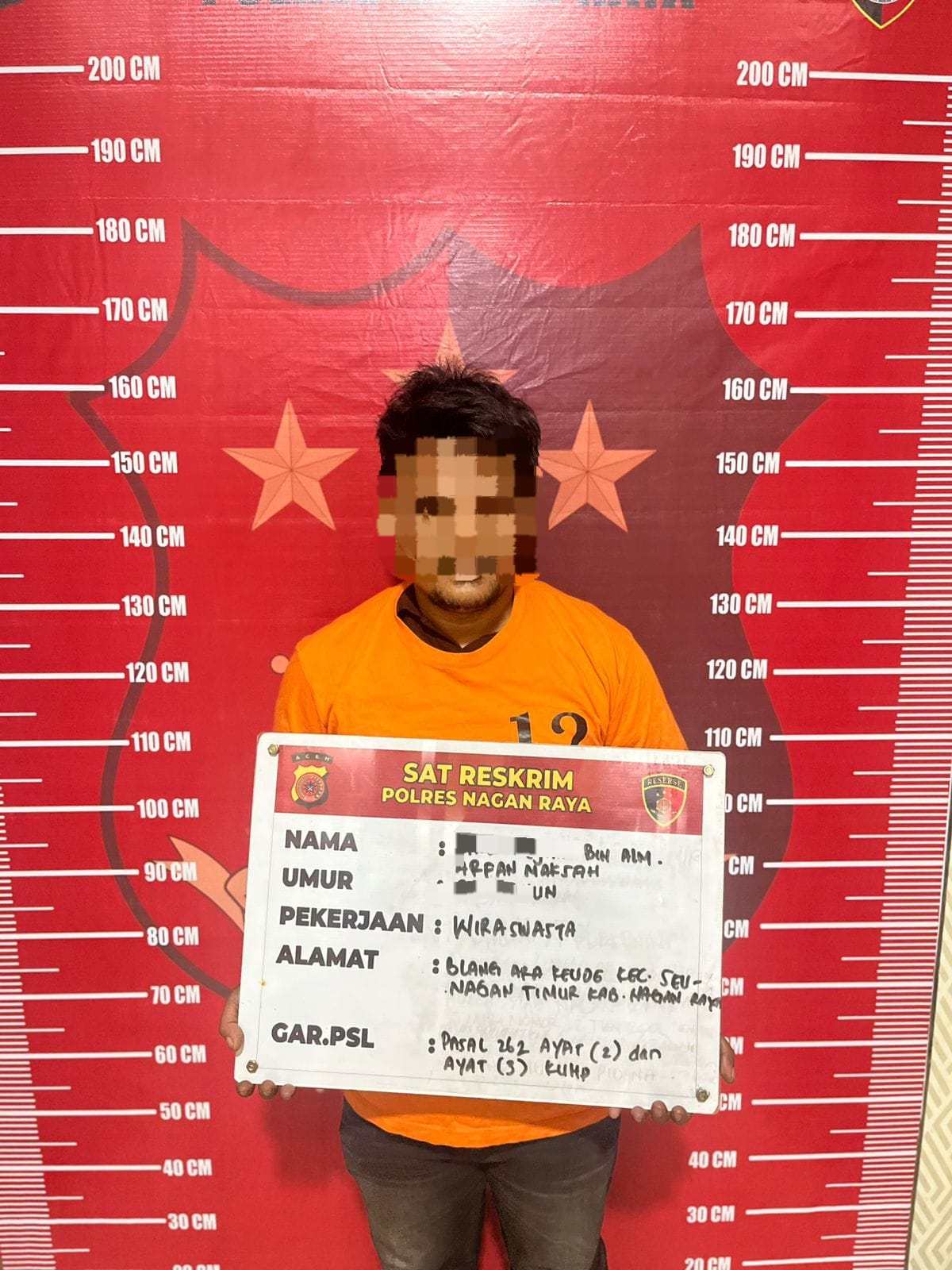 Kasus tersebut terjadi pada Rabu, 11 Maret 2026, di Desa Babahrot, Kecamatan Tadu Raya, Kabupaten Nagan Raya. Pelaku diduga melakukan kekerasan terhadap orang atau barang secara bersama-sama, sebagaimana dimaksud dalam Pasal 262 ayat (1), (2), dan (3) KUHPidana.