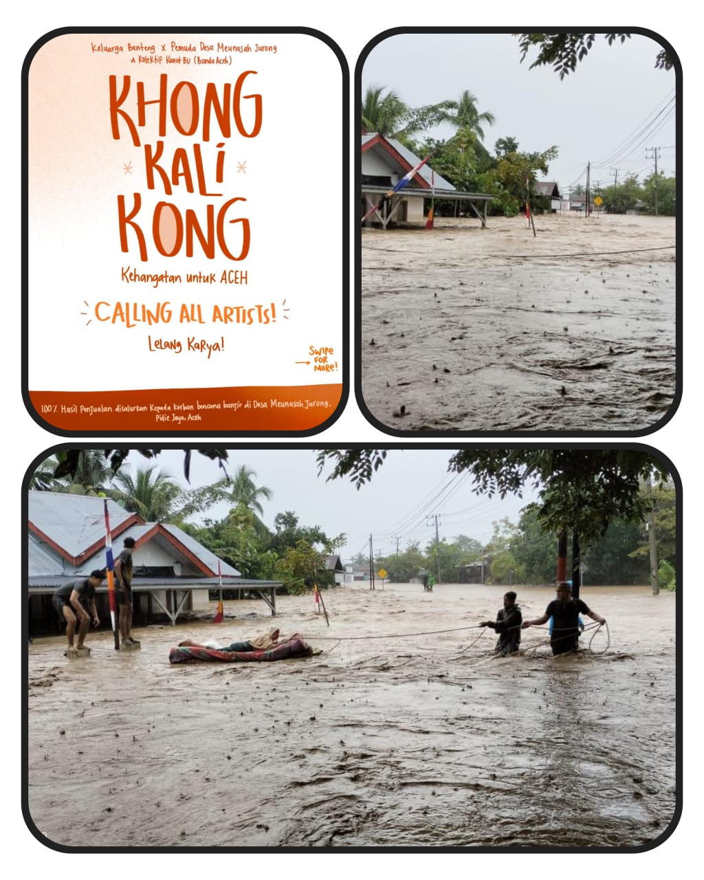 100% hasil penjualan karya dalam pameran dan lelang akan disalurkan langsung untuk memenuhi kebutuhan darurat korban banjir di Desa Meunasah Jurong. Proyek “KHONG KALI KONG: Kehangatan untuk ACEH” menjadi bukti bahwa kreativitas dan seni dapat menjadi alat yang powerful untuk aksi kemanusiaan, mengubah simbol sehari-hari menjadi pembawa pesan harapan dan bantuan konkret di tengah kesulitan.