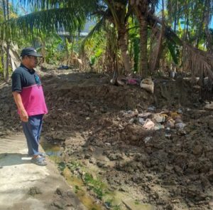 Penyebabnya bukan lagi kiriman banjir bandang dari gunung, melainkan sistem drainase atau selokan di lingkungan mereka yang hingga saat ini masih mati total. “Selokan-selokan di depan dan di sekitar rumah ini masih penuh terisi lumpur. Lumpur itu sudah mengeras membatu. Jadi, air hujan tidak punya tempat mengalir, langsung naik ke pekarangan dan masuk ke rumah,” jelasnya lebih lanjut.