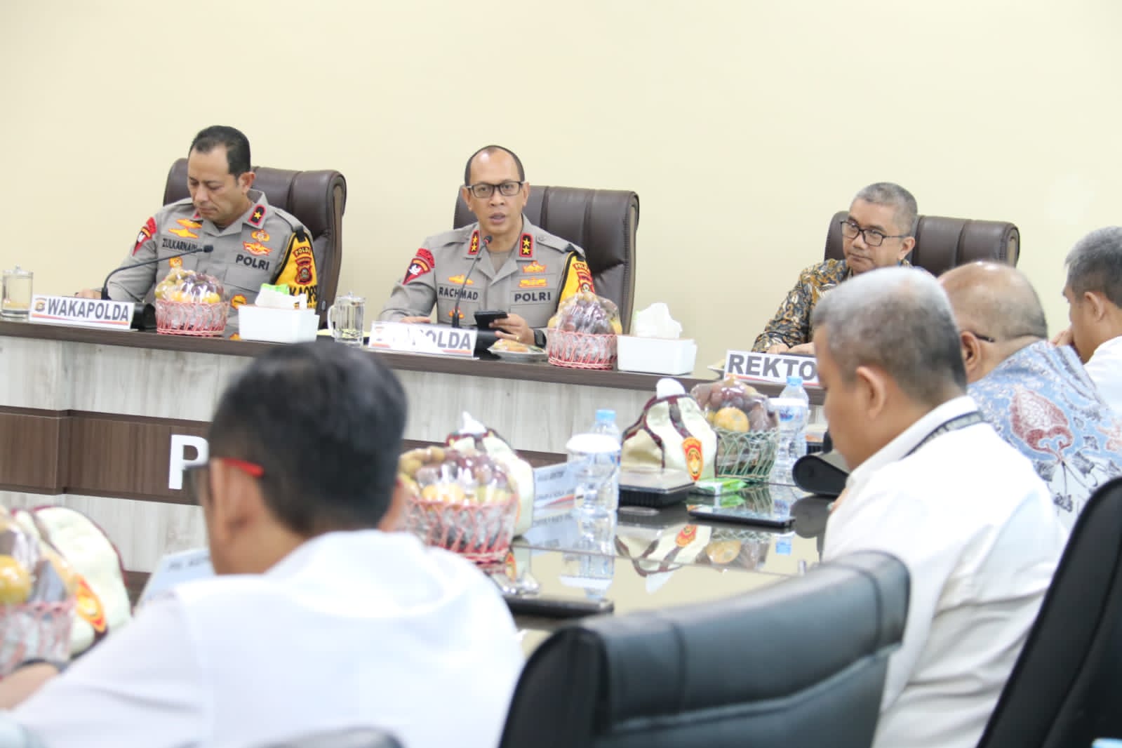 Wakapolda Sumsel Brigjen Pol M. Zulkarnain, S.I.K, M.Si, Karoops Polda Sumsel Kombes Pol. M. Anis Prasetio Santoso, S.H, S.I.K, Karo SDM Polda Sumsel Kombes Pol. Sudrajad Hariwibowo, S.I.K,M.Si, Dirpamobvit Polda Sumsel Kombes Pol. Mirzal Alwi, S.I.K, Kabidkum Polda Sumsel Kombes Pol. Tulus Sinaga, S.I.K,M.H, Kabidhumas Polda Sumsel Kombes Pol. Sunarto, Kabag kerma Rooops Polda Sumsel AKBP. Helda Prayitno, S.H dan Kasubid Bidkum AKBP. Sri S, S.H, M.H