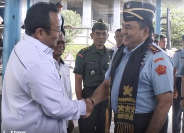 Suasana penyambutan berlangsung hangat dan berwibawa, menggambarkan keakraban yang terjalin erat antara unsur pemerintah daerah dan jajaran TNI.